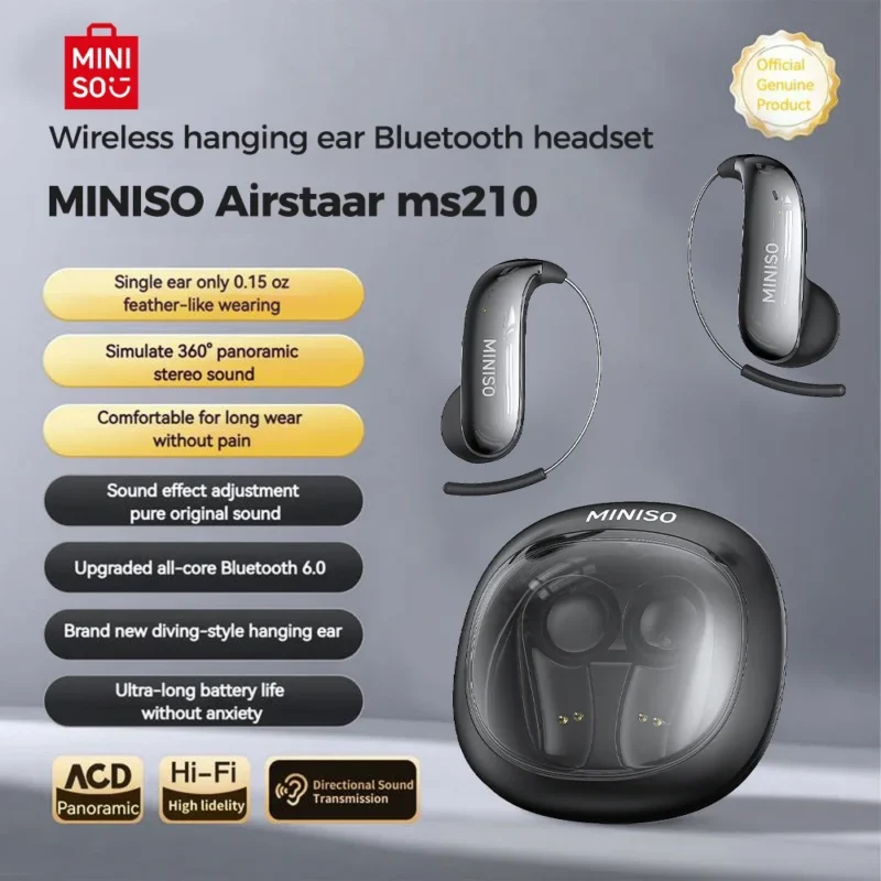 [Glasses-friendly]MINISO MS210 Bluetooth V6.0 Earphones Wireless Headphones AI Translator Earbuds Ultra-light Earphones