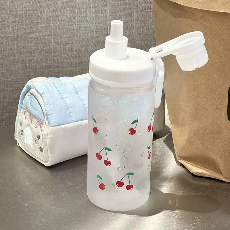 Kawaii Cherry Water Bottle Plastic Cup with Lid Straw Cute Coffee Bubble Milk Tea for Drinkware Outdoor Sports Drinking Watercup