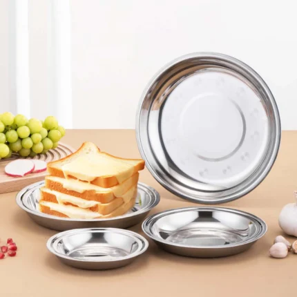 6-pcs Stainless Steel Round Plate,Camping Metal Dinner Plates,Reusable Serving Snack Eating Salad Dishes Non fragile plate