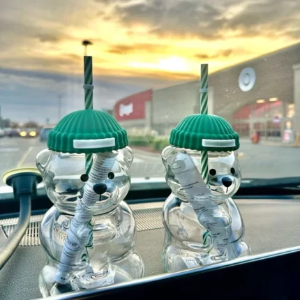2025 New 500ML Cartoon Bear Shaped Coffee Mug Cute Bear Mug Glass Cup With Straw Transparent Creative Milk Coffee Water Cups