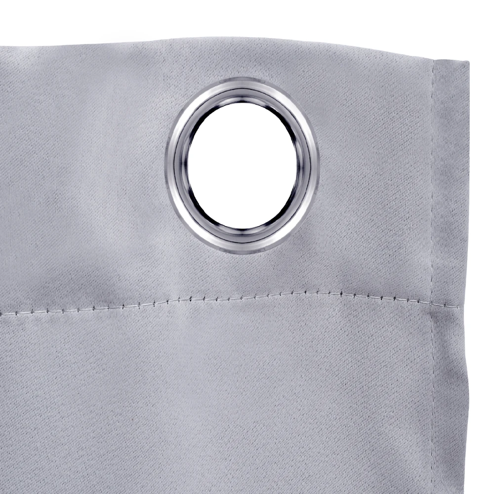 Equipped with several metal grommets on the top, it is easy to string two curtain panels up on a curtain rod (not included)