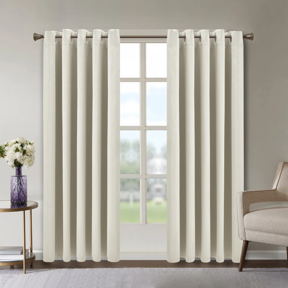 【Lifeideas】Solid Colour Grommet Top Polyester 100% Blackout Curtains Pair Home Decoration Windows Doors