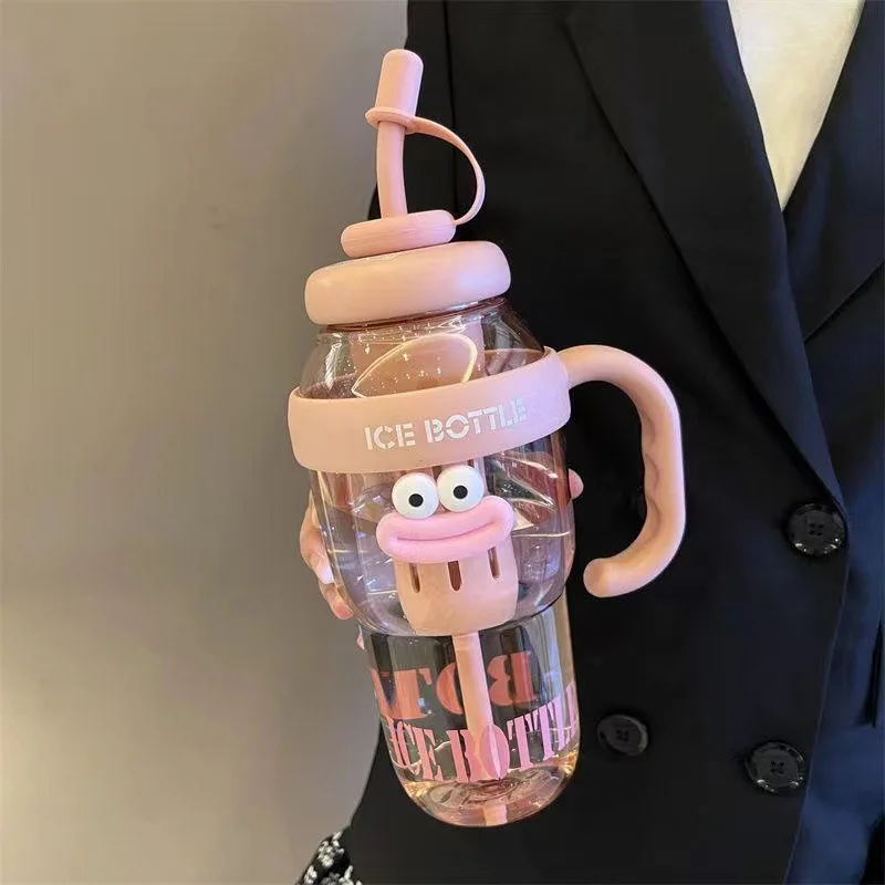 1100ML Sports Water Bottle Cute Aesthetic Large Capacity Water Cup for Women Summer Home Outdoor Portable Straw Cup