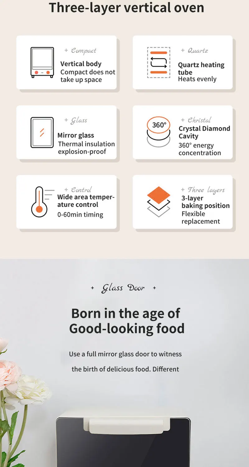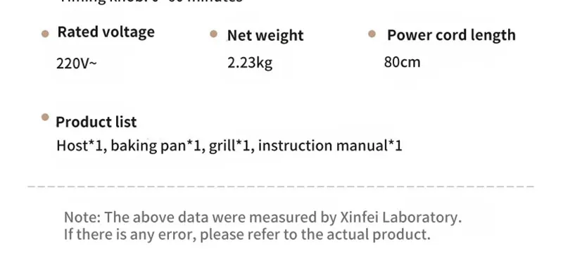 Temperature control knob: 70~250℃, timing knob: 0~60 minutes