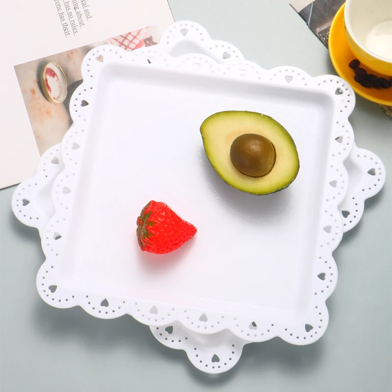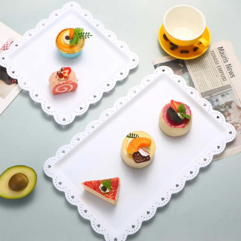 2 square/rectangular dessert plates PP material can be reused for hotel restaurant wedding birthday party