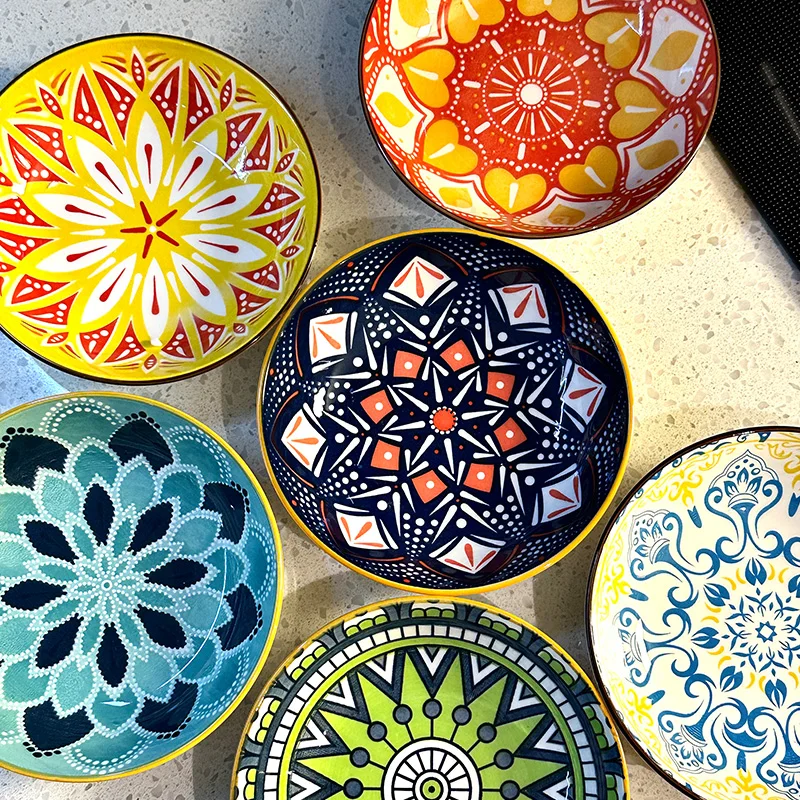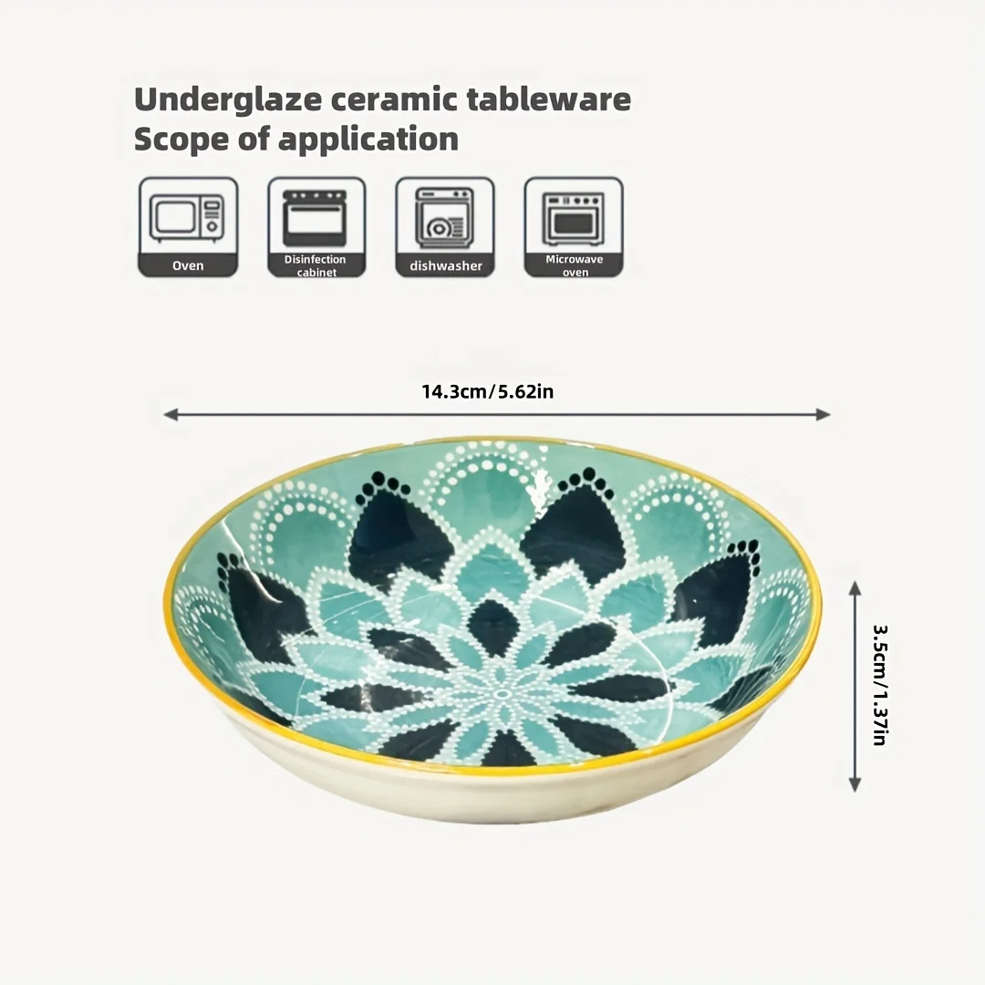 6pcs- Ceramic Bohemia Plate, Salad Plate, Appetizer, Serving Dried Fruit, Desserts And SaladsDishwasher Oven Microwave Safe