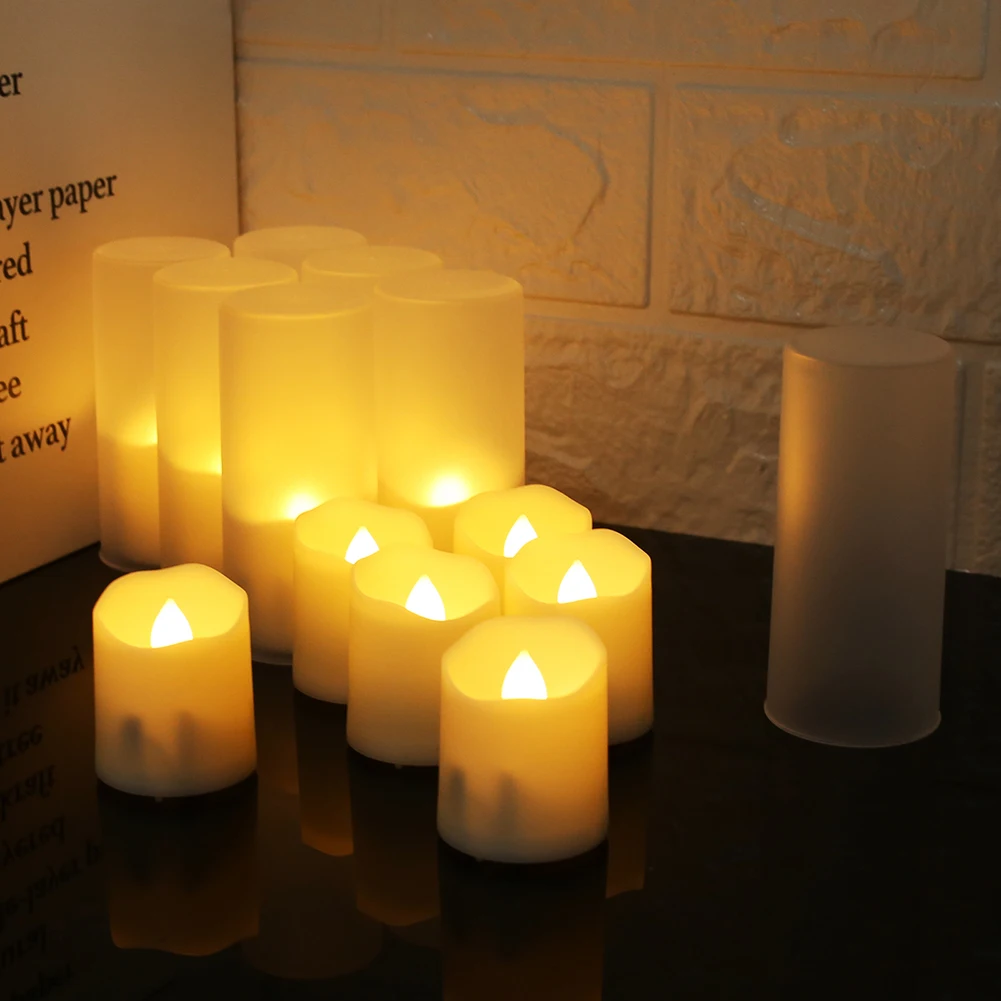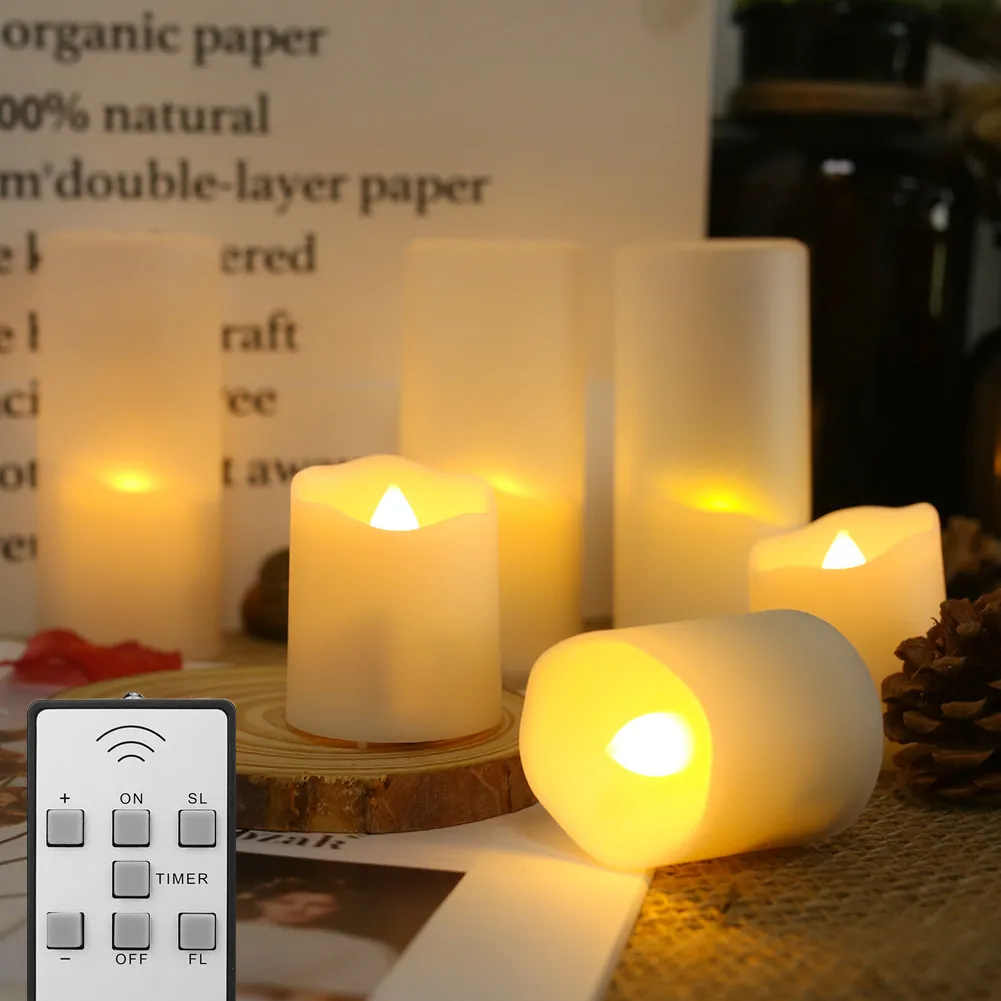 6Pcs/Set Rechargeable LED Candle Timer Remote Flickering Flames Wedding Candles Birthday Decor Tealights USB Charger Candle Lamp