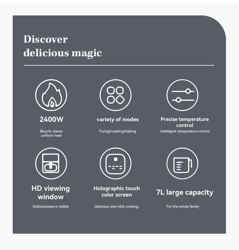 7L Electric Air Fryer Smart Multi-function Hot Convection Oven LED Touch Control 1400W Visible Window Deep Fryer without Oil