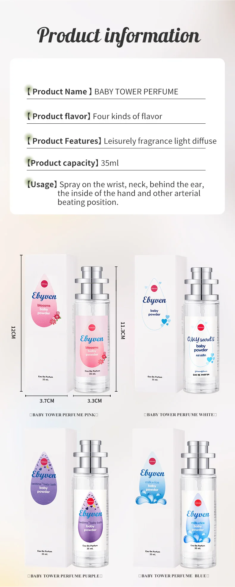 Baby Powder Tower Milk+Rice Perfume Spray,Floral Fruity Women Scent,Citrus/Musk/Sandalwood Vanilla/Oak/Vetiver Light Fragrance