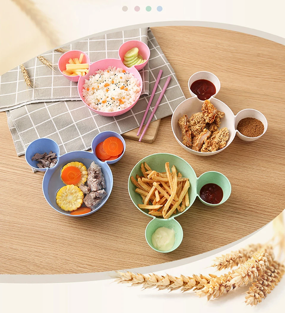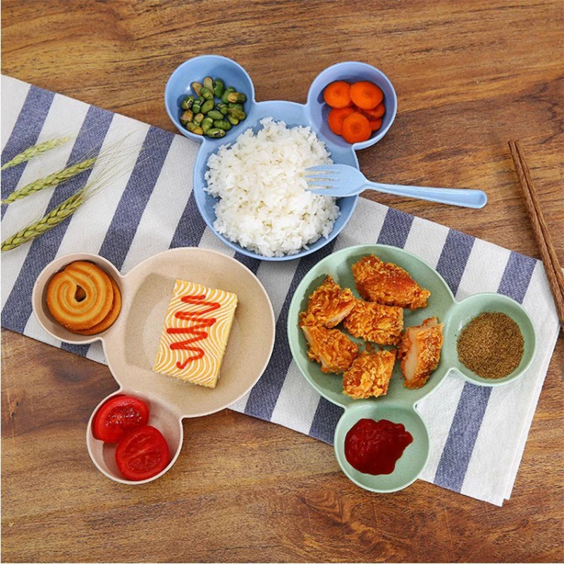 Cute Baby Plates with Dividers Dinner Plates Kids Bowl Tray Tableware Set Infant Feeding Children Divided Dinnerware BPA Free