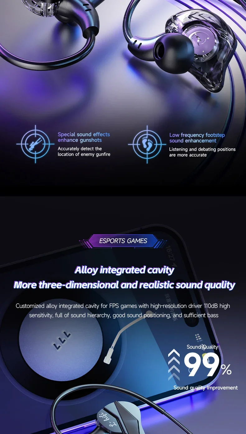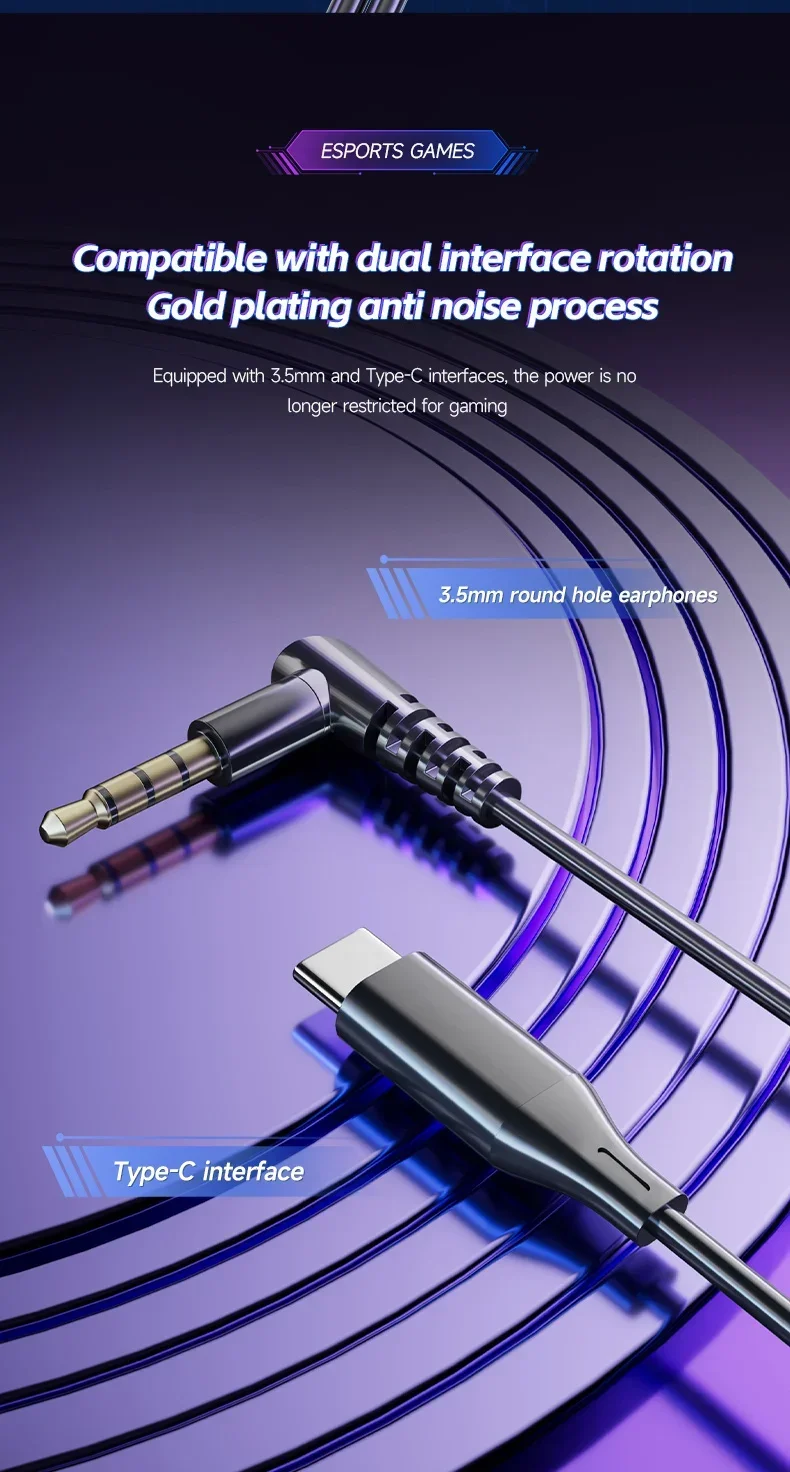 Gaming Earbud Gamer Headphone With Dual Microphones Typec&3.5mm In-ear Earphones HiFi Stereo Headsets Sport with Mic for Samsung