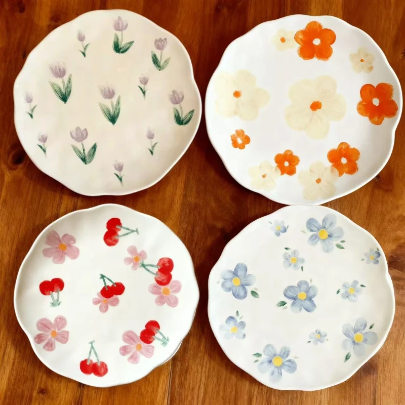 - color: Pink cherry plate, tulip plate, blue plate, orange plate