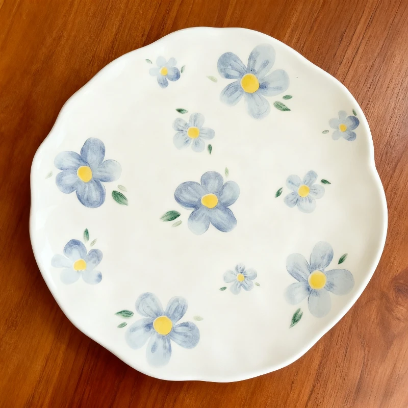 Huamian Copyright ins Korean style milk yellow hand-kneaded irregular ceramic plate dessert plate coffee cup plate