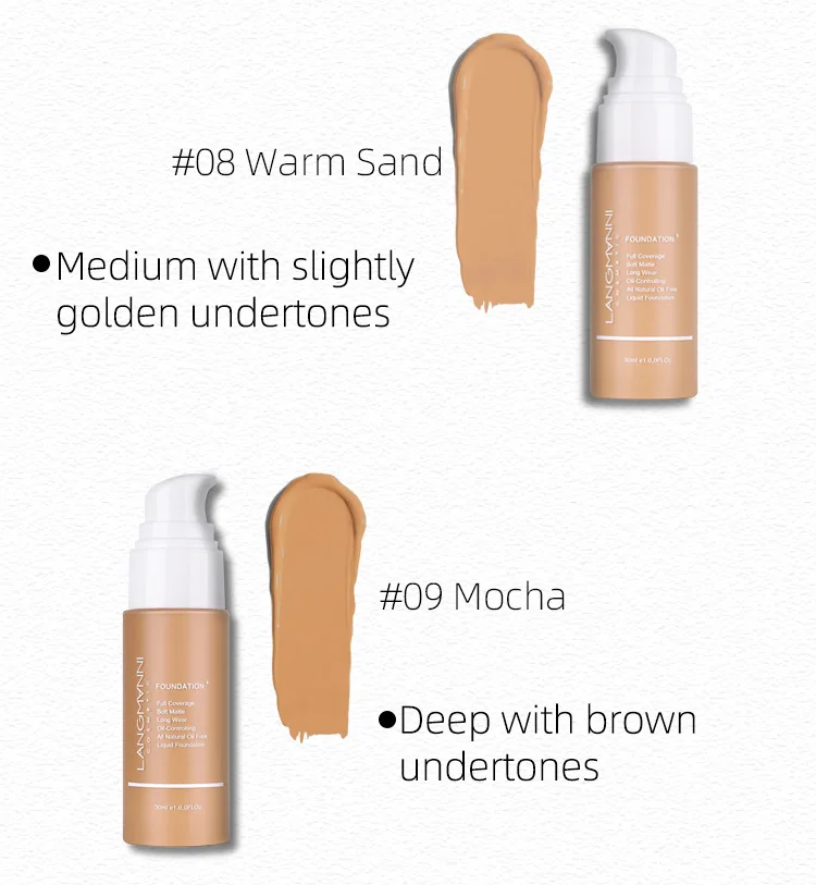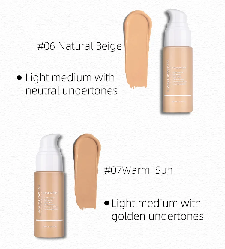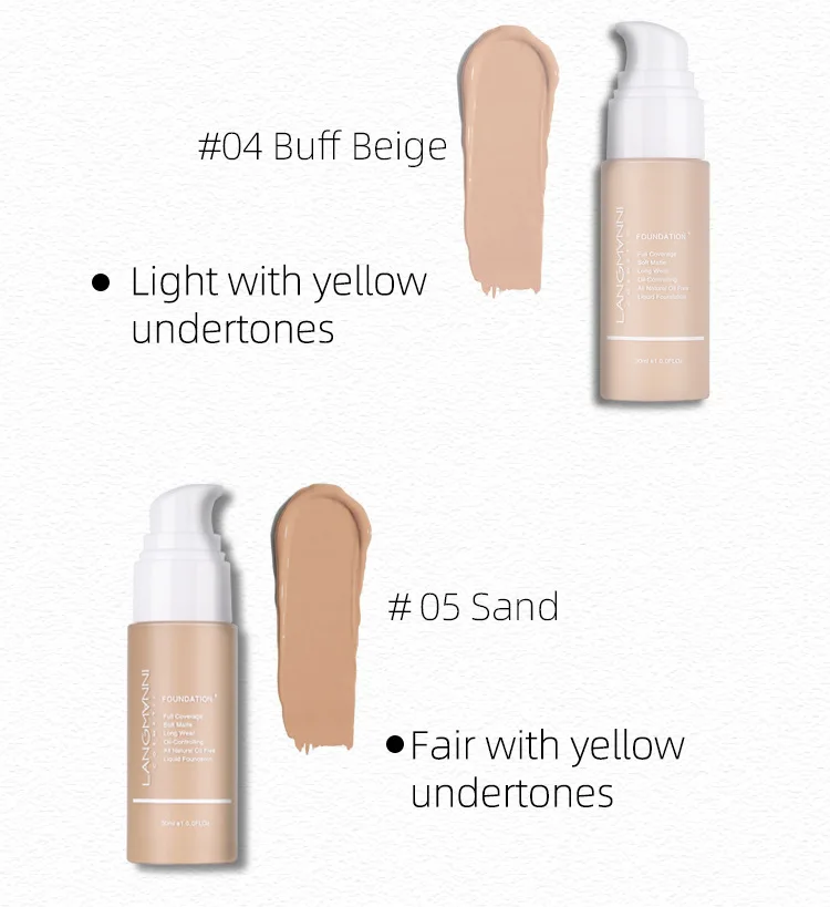 Langmanni 30ml Matte Face Foundation Cream Waterproof Oil Control Cover Base Concealer Liquid Foundation Makeup Cosmetics