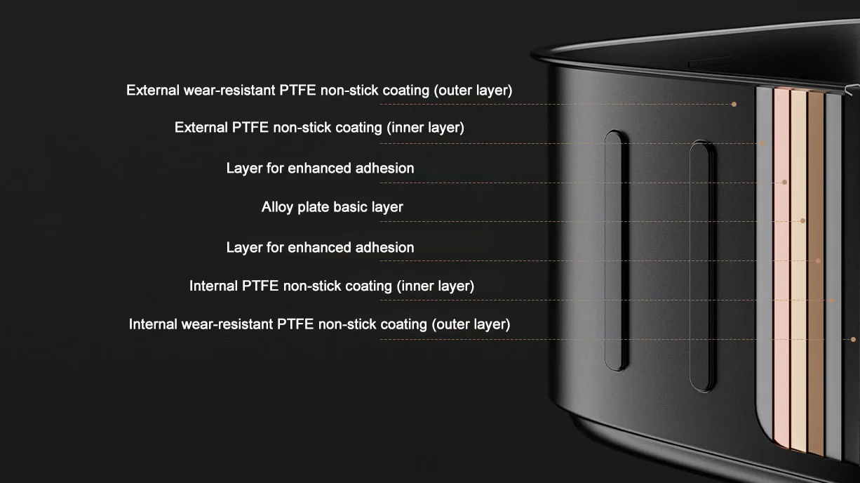 *External wear-resistant PTFE non-stick coating (outer layer)