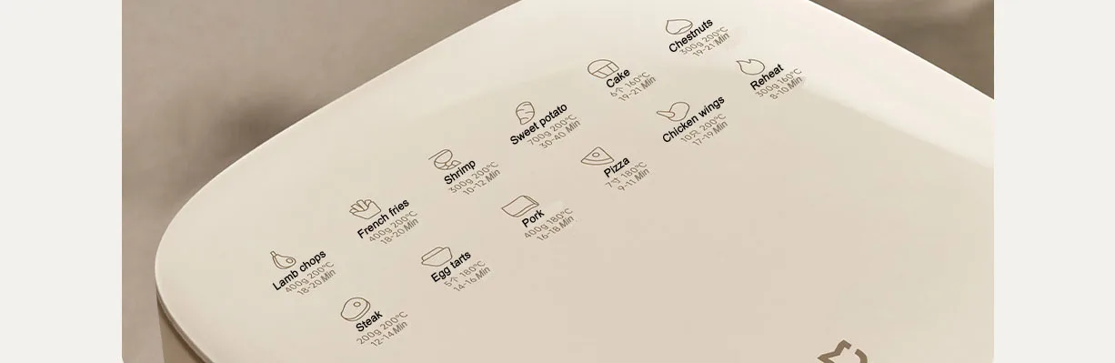 1200W light wave tube far infrared heating is 18% more efficient than 1500W stainless steel tube heating*, with rapid heating and strong heat penetration, can lock in juices to produce tender food with a crispy outer layer.