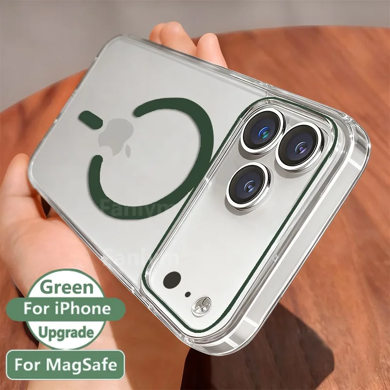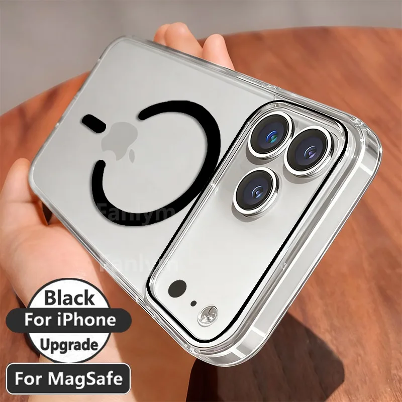 Original Transparent Phone Case For iPhone 16 17 15 14 13 Pro Max Plus Air 16e Clear For Magsafe Magnetic Wireless Cover funda