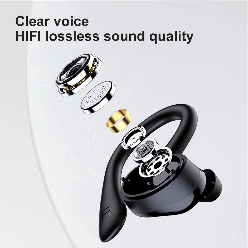 Feature: 1.Cutting-edge BT5.1 Connection: Experience seamless audio with our advanced wireless headphone, offering faster transmission speeds and enhanced stability ensuring uninterrupted music and clear calls without any signal dropouts. 2.HiFi stereo bass earphone with ANC: Immerse yourself in rich, clear sound with balanced highs, crisp mids, and deep, powerful bass. Our sports earphone offers new levels of clarity for both music and conversations. 3.Secure Earhook Design: Stand out with our unique, soft, flexible earhooks that fit snugly, providing a secure fit during intense workouts. Perfect for sport game headset enthusiasts, equipped with waterproof and sweatproof technology. 4.Extended Battery Life: Stay connected longer with an impressive 120-hour standby time and up to 5 hours of continuous music play. Built-in LED indicators on the handsfree headset case check earbuds and charging levels. 5.User-Friendly Operation: Easily pair your sport game headset, auto-connects when picked and shuts off when placed back. Each earbud handles calls, adjusts volume, switches tracks, perfect for exercises requiring hands-free convenience.