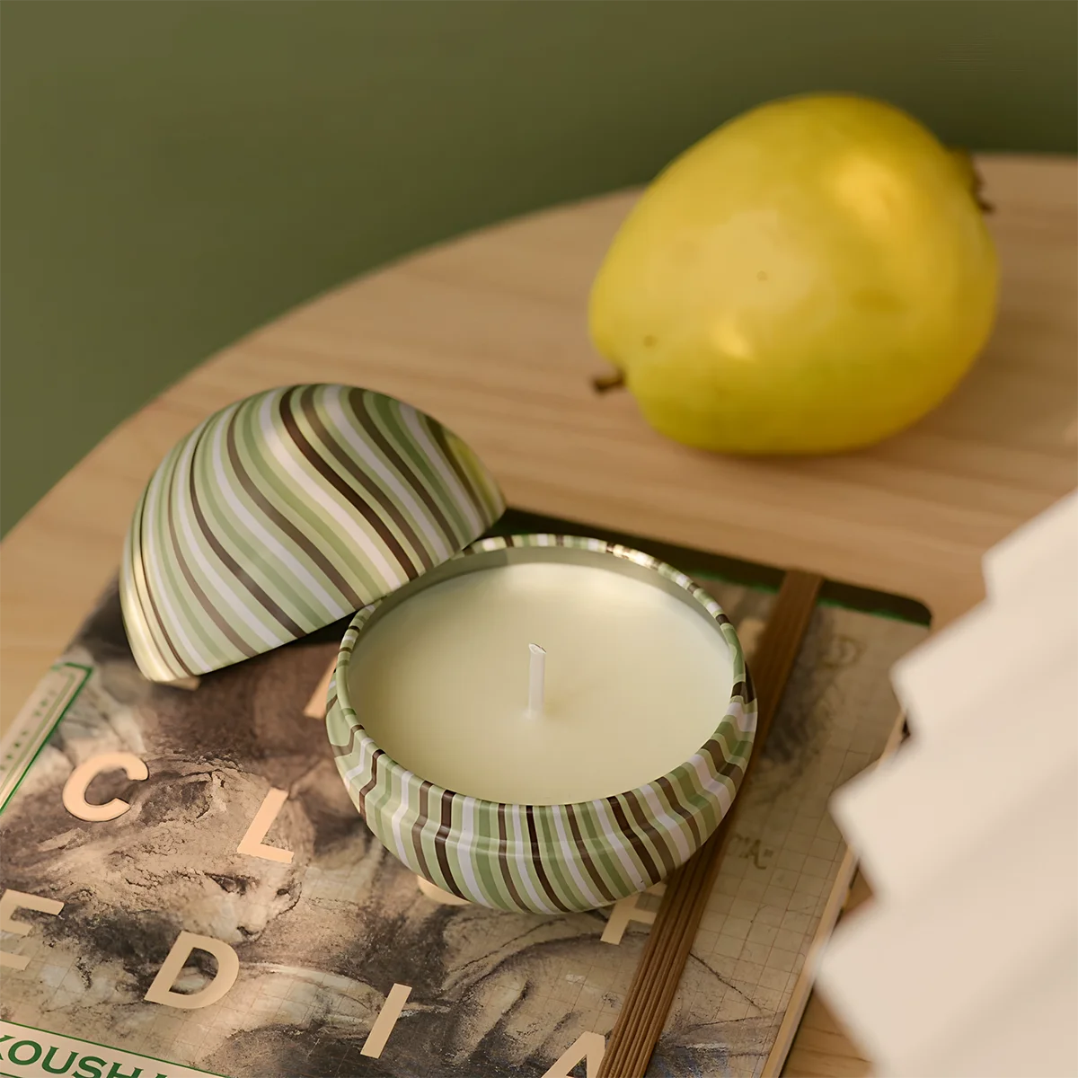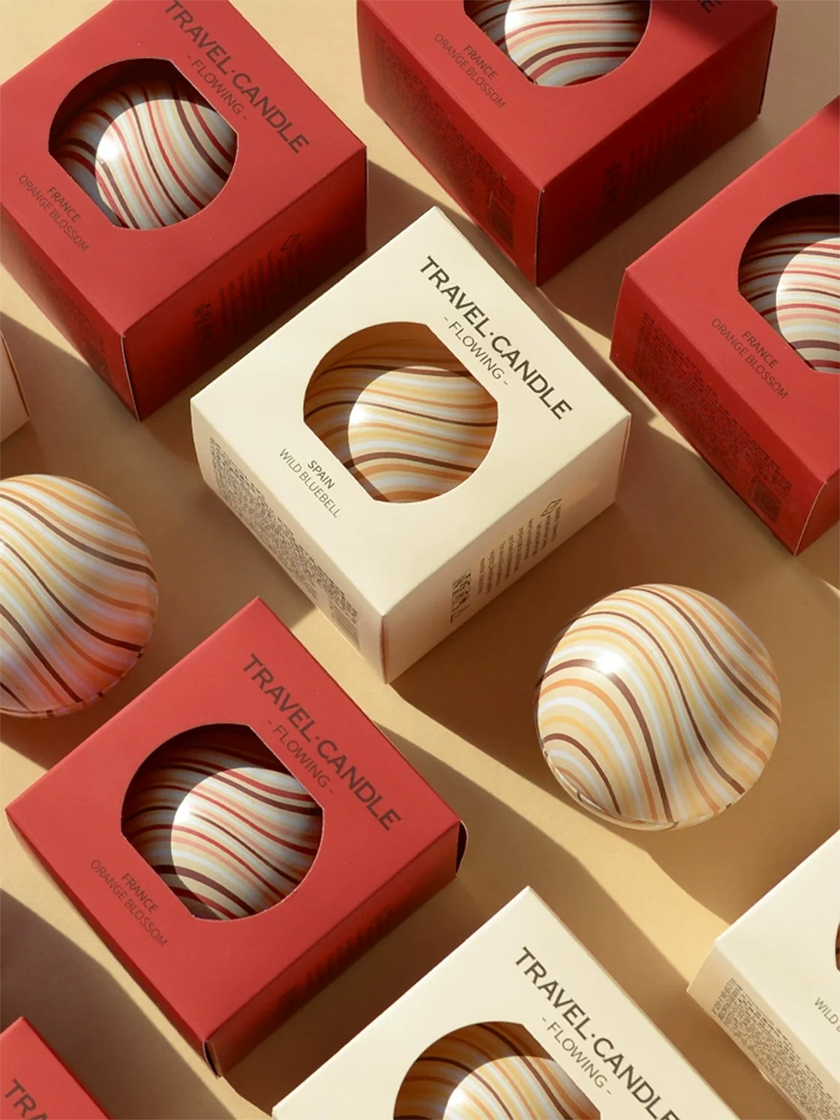 These spherical candles come in stylish curved tin cans, adding a unique touch to any decor or event setting.