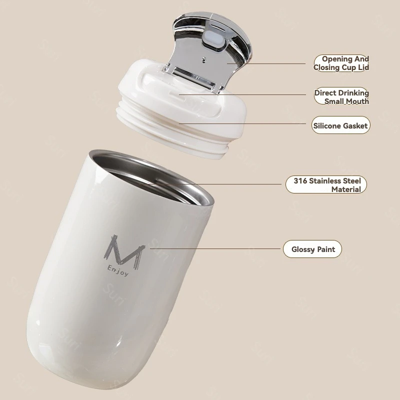 Stainless Steel 316 Vacuum Insulated Tumbler Cup with One Push Open Lid Leak Proof Thermal Flask for Hot And Cold Drinks
