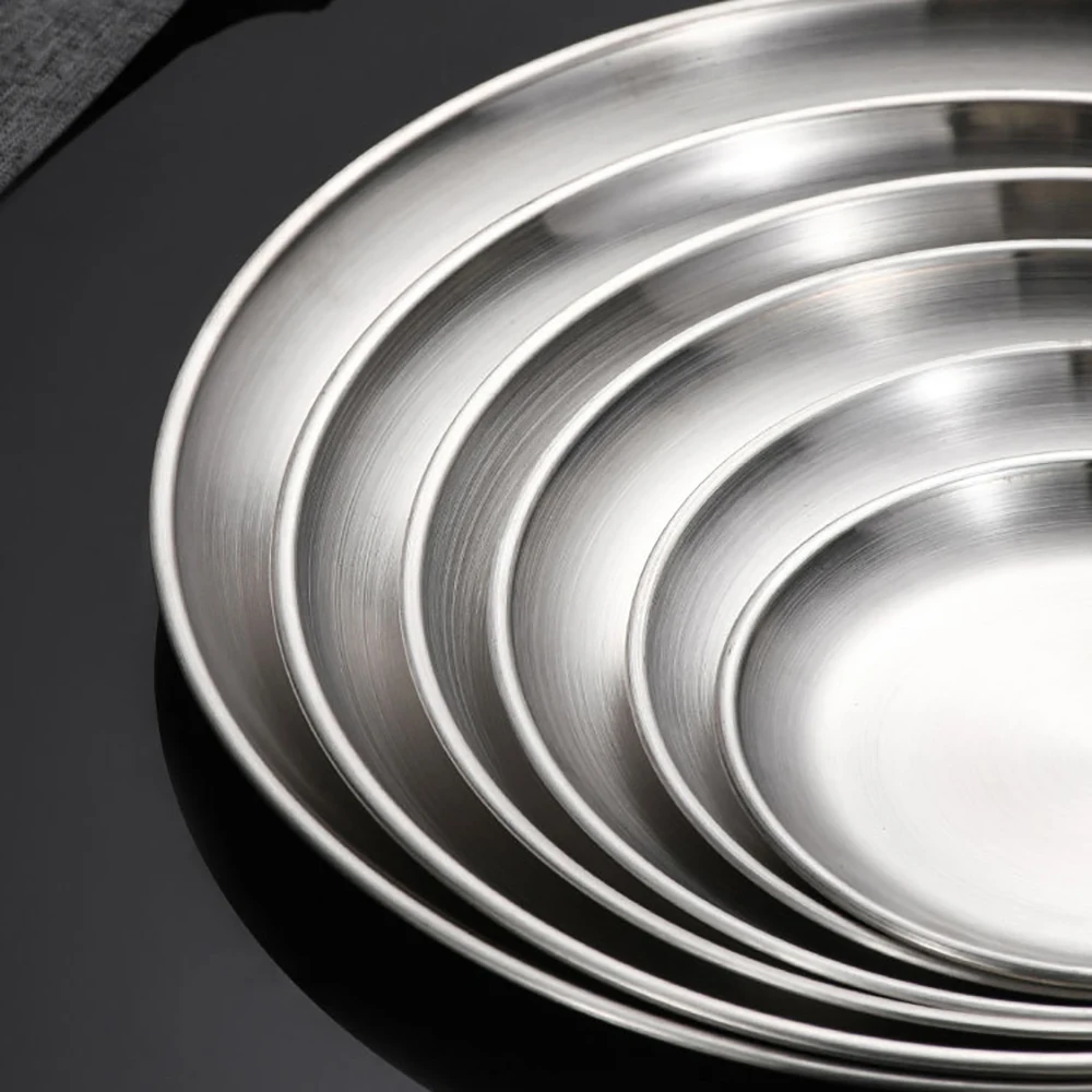 Stainless Steel Metal Round Dining Disc Bone Spitting Dish High Quality Shallow Tray Silver BBQ Disc Kitchen Plate Tableware