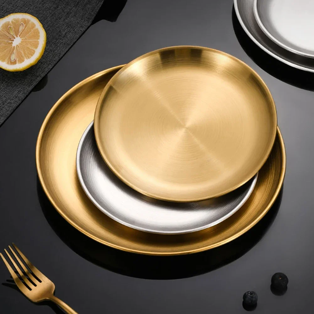 Stainless Steel Gold Dining Plate Dessert Plate Nut Fruit Cake Tray Snack Kitchen Plate Western Steak Kitchen Plate Dish