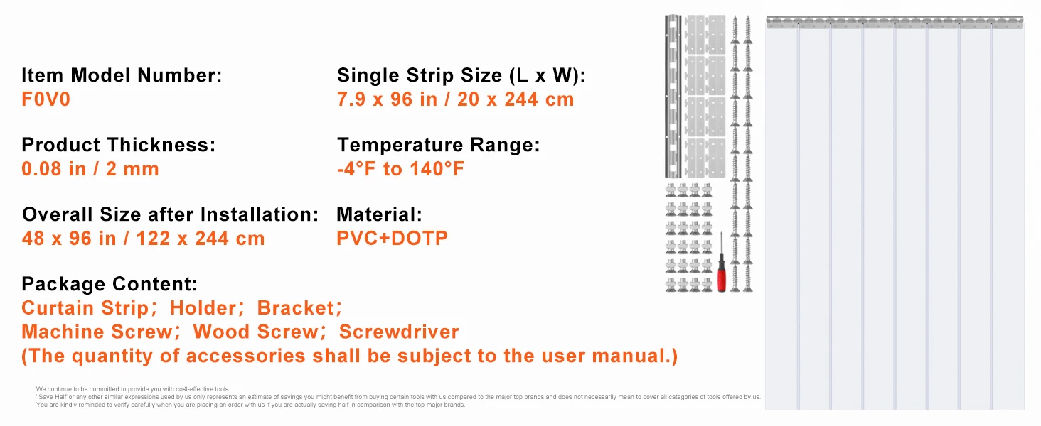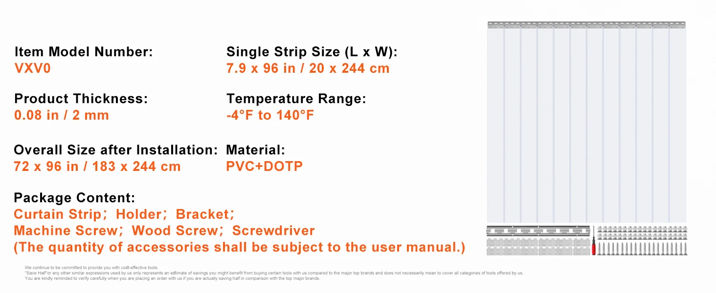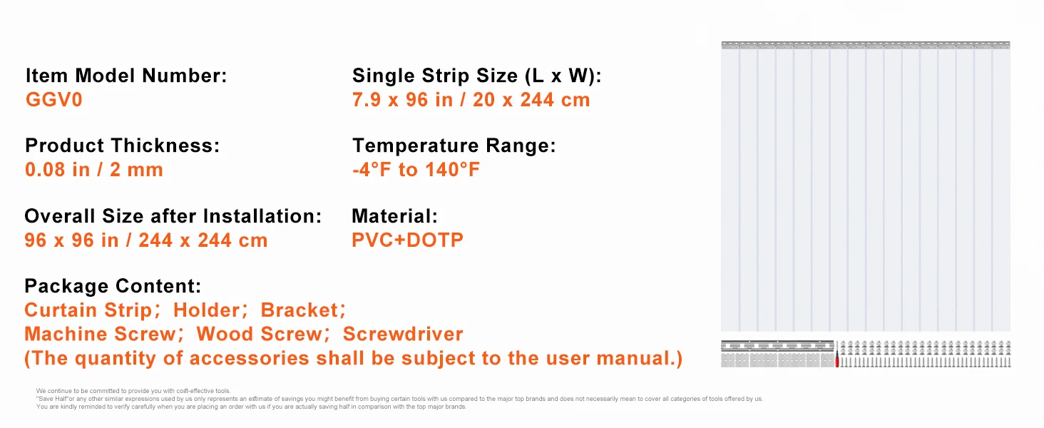 • All-Weather Friend: From a chilly -4℉ warehouse to a steamy 140℉ kitchen, this plastic strip curtain stands strong. Picture this: summer days without losing your cool air and winter times when the cold stays out. Yep, that’s our strip curtain.