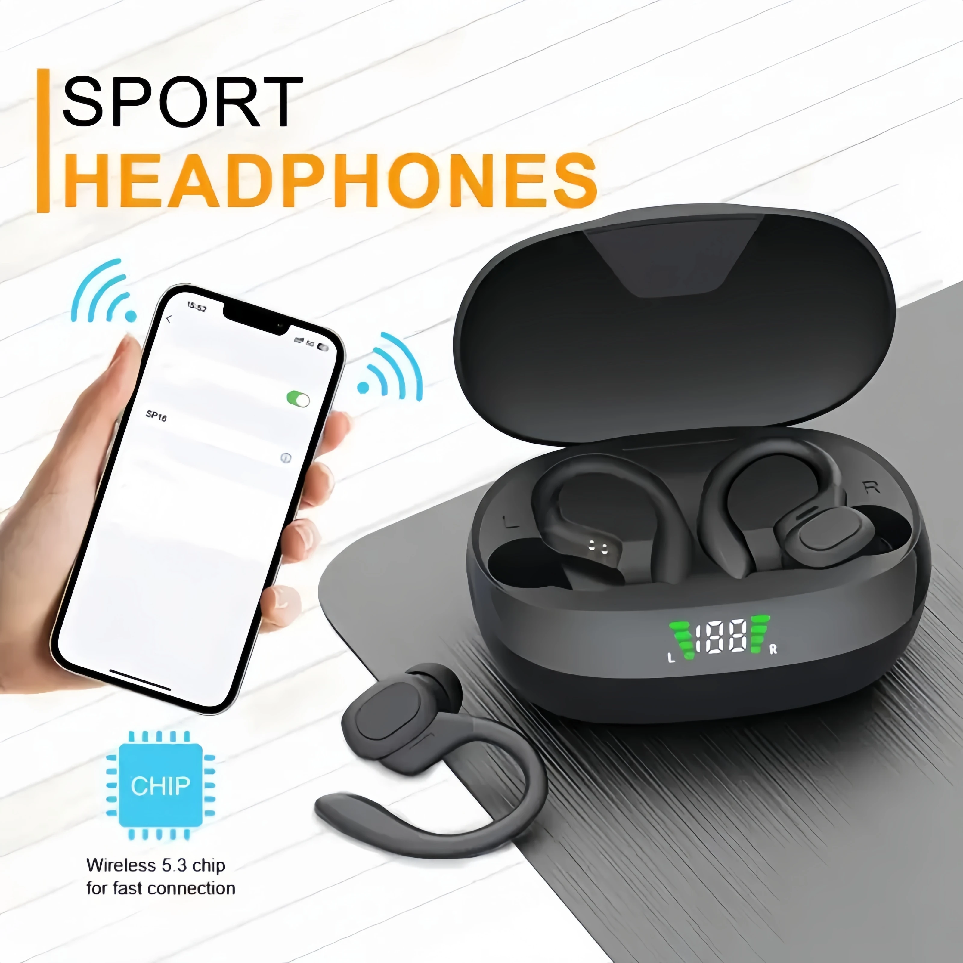 True Wireless Earbuds, Tws Headphones with Microphone, Sports Ear Clip Headphones, Stereo In-Ear Headphones with Led Display