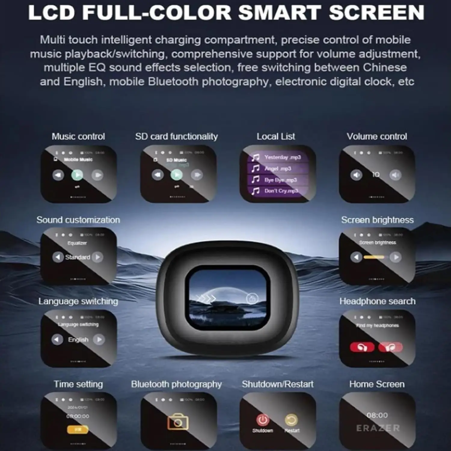【HTC NE20】Bluetooth V6.0 Earphones AI Translator Earbuds OWS LCD Touch Screen Sport Wireless Headphones HD Stereo Sound Longlife