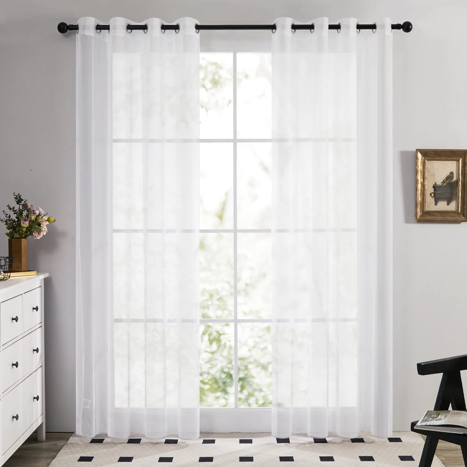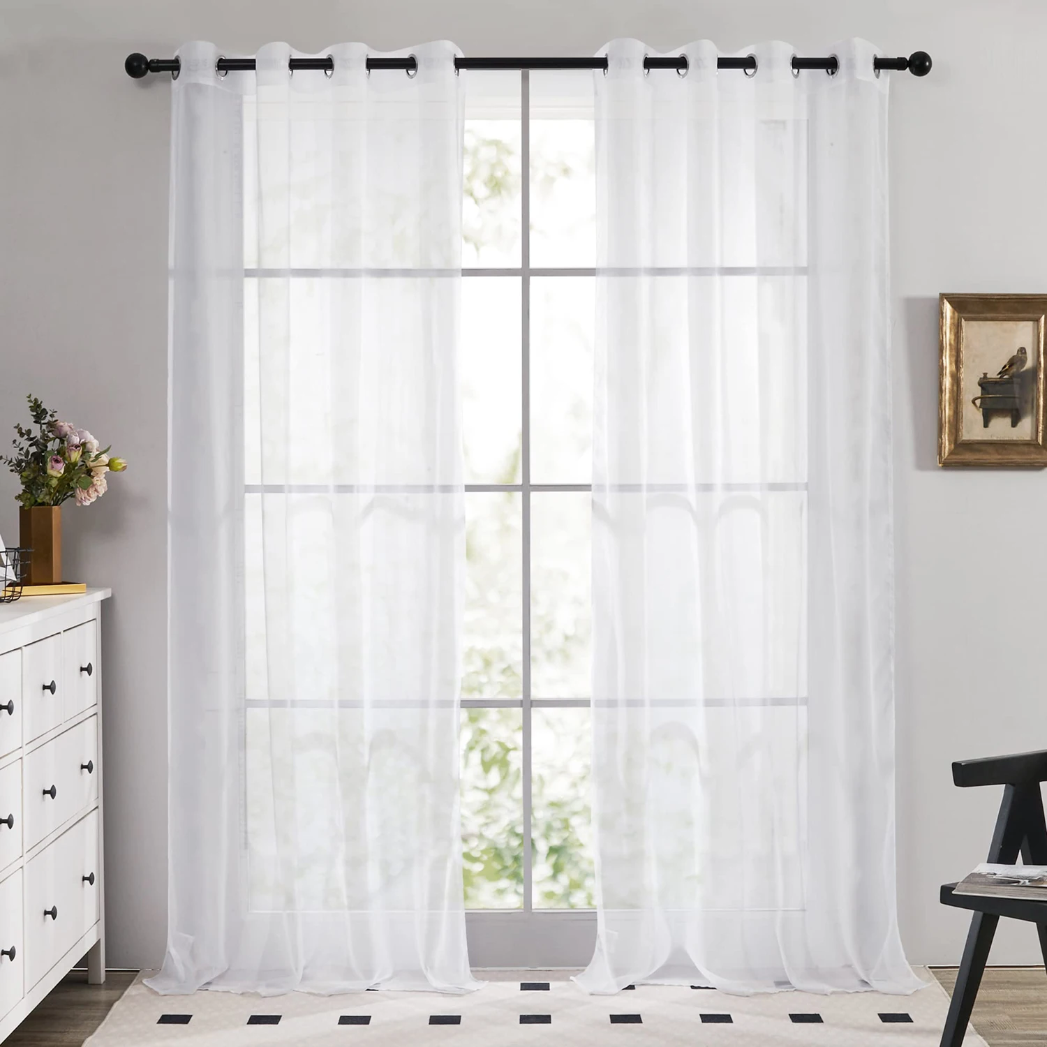 White Sheer Curtains Drapes 132CM Width for Living Room Grommet Top Lightweight Airy Gauzy Light Filtering Window Treatments