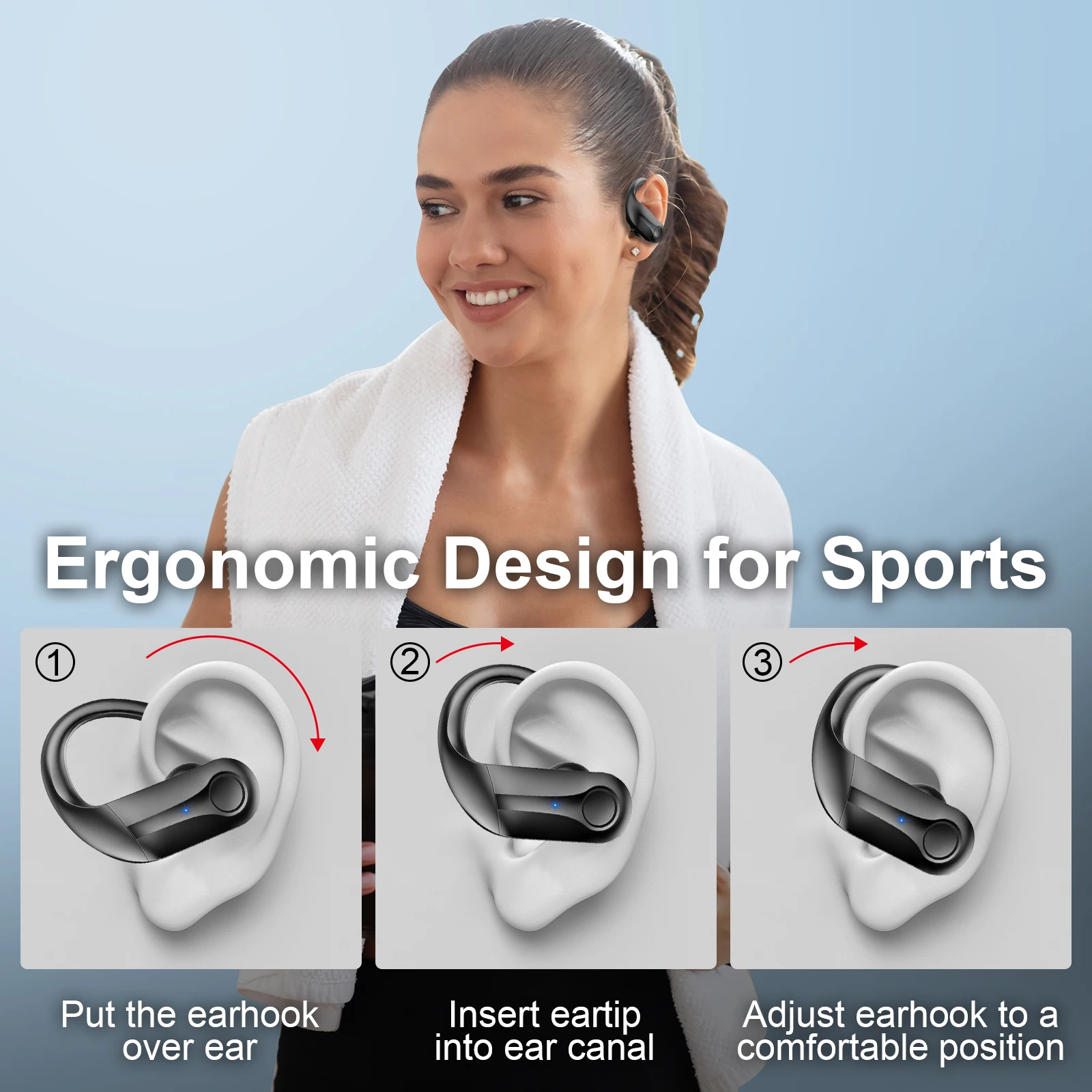 M113 Bluetooth Wireless Earphones EarBud Sports Noise Reduction Waterproof Earhooks Headset with Earhooks Built-in Mic Earphones