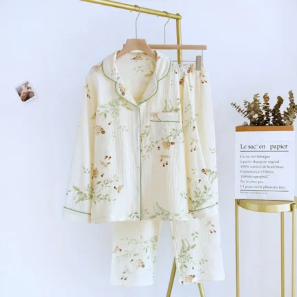 large size pajamas women cotton crepe cotton long sleeve simple and comfortable